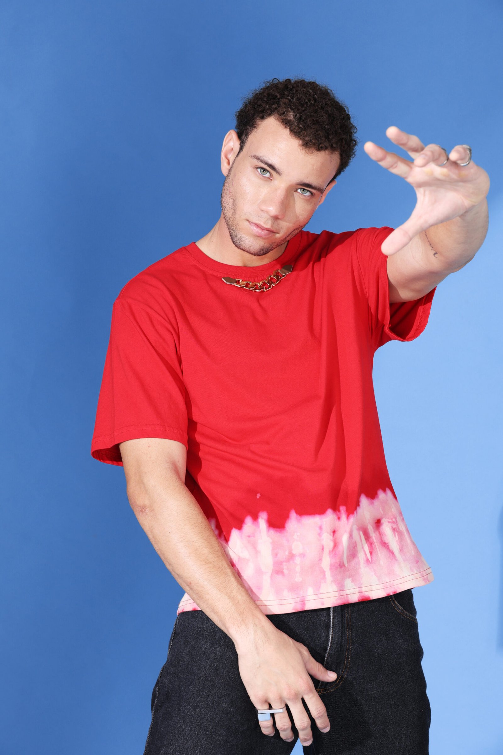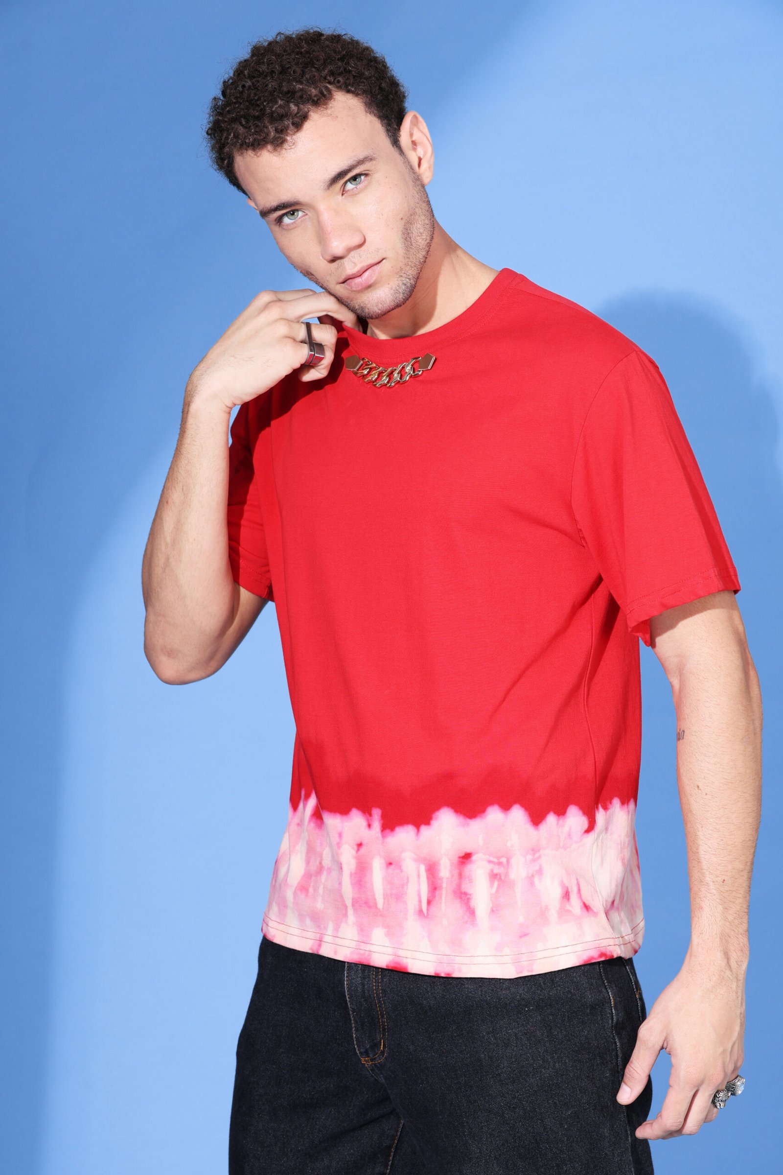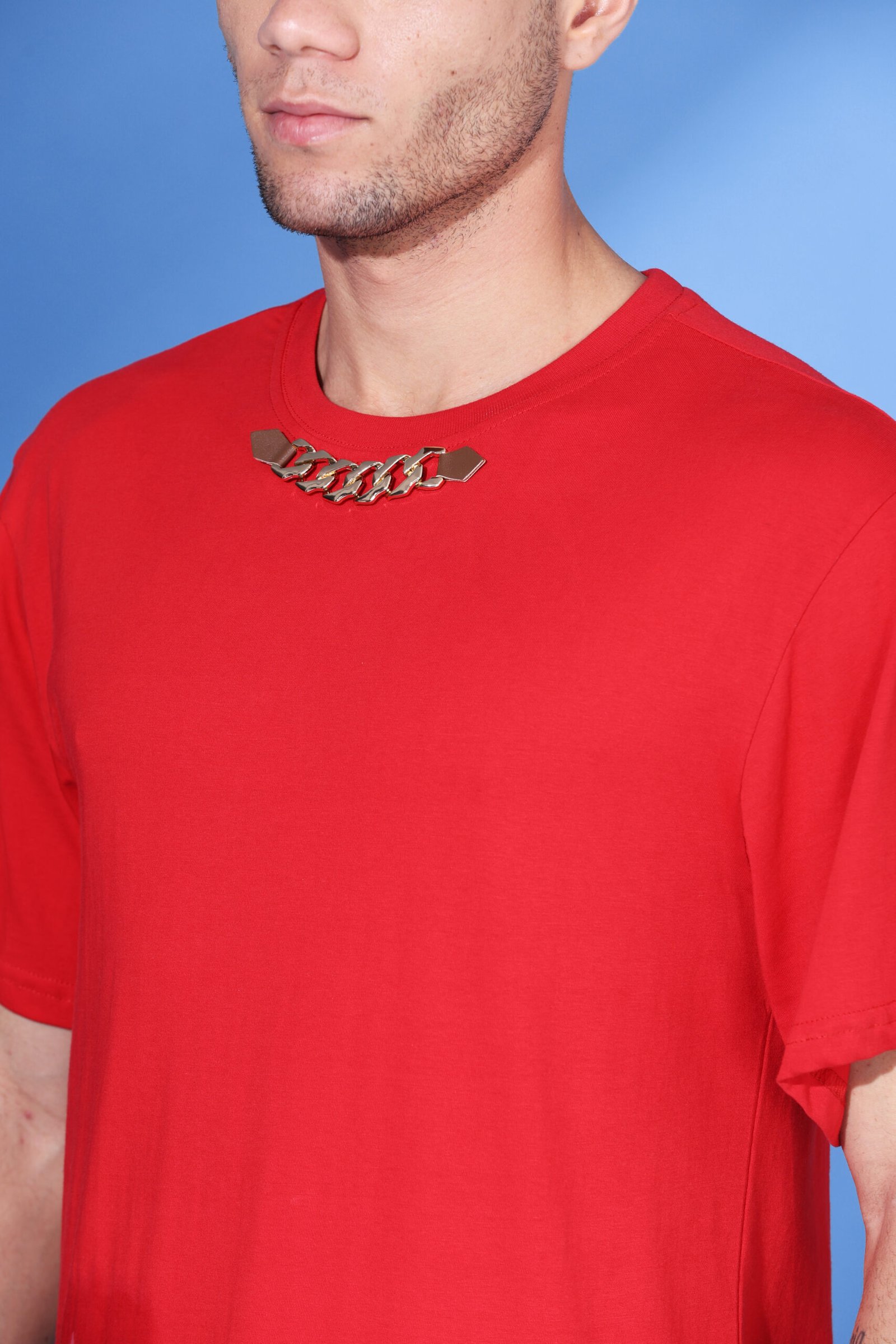 A bold red t-shirt featuring a striking statement chain design. The Red Blanch Statement Chain T shirt makes any outfit stand out instantly.